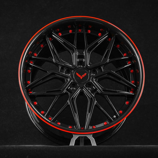 RV-MR05 | Custom Forged 1-Piece Corvette C7 Grand Sport Red & Black Wheels
