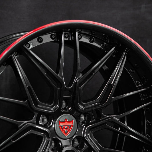RV-MS016 | Custom Forged Corvette C8 Stingray / Z51 Red & Black Wheels